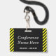 This eyecatching badge design features the message "CONFERENCE ADMIN!". It also features yellow and black coloured caution stripes. The back features a customisable event name and event date(s). [~Z0000286]