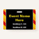 This eyecatching badge design features the message "CONFERENCE OFFICIAL". It also features eye-catching yellow, red and orange coloured stripes. The back features a customisable event name and event date(s). [~Z0000286]