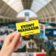 This eye-catching badge design features the message "EVENT MANAGER". A badge like this could perhaps be used to identify that the wearer is an official at an event. [~Z0000307]