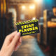 This attention-grabbing badge design features the message "EVENT PLANNER". A badge like this could perhaps be used to identify that the wearer is an official at an event. [~Z0000307]