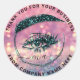 Eyelash Logo NameThank Glitter Holograph Teals Classic Round Sticker