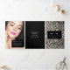 A glamourous leopard print/animal print fills the background of this beauty-themed 5x7 tri-fold brochure. White lashes rest above your name or business name for an instant logo. Created for eyelash extensions salons, makeup artists, beauty specialists and more - these smaller sized brochures are perfect to display your price lists and menu of services. A great marketing piece to hand out to potential clients to quickly introduce your business. Please contact the designer for help with special typesetting or layout variations. Art and design © 1201AM Design Studio | www.1201am.com