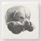 The Labrador’s gaze over its plush bear adds playful intensity to your coffee table. High-contrast art meets everyday function.