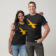 I give wanted to give this a 4 instead of a 5 because these Basic DARK T0shirts run unexpectedly SLIM or Narrow. Which is great if you do not have a potbelly, but I have a paunch. It isn't the shirt's fault that I've got a beer belly. The design and shirt itself is a quality cotton shirt. The color is more of a deep purple, but still a very pretty color. The Basic DARK T-shirts run a bit SLIMMER than the Basic Ts. The neck is a fraction narrower (or seems to be narrower) also. I'm a paunchy middle-aged woman and my neck is 12 inches (31cm) thick and the neckline fell about the same as in the photo of the man, and I had the desire to tug it a bit. So if you're a thick necked man or like loose shirts, be aware these are slimmer shirts. Once I get rid of my lockdown paunch it'll look great. The shirt washed well in cold water with no apparent bleeding. We don't have a dryer, so it hung dry. Did not shrink. Love the colors and the design. The design looks smaller on my shirt than it does on the model on-line. But still, it looks good on the shirt. The printing looks as it does on the model, just the size seems fractionally smaller. Washed garment in cold water, hung dry and design appeared unaffected.
