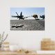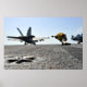 A shooter takes cover from jet blast as an F/A-18F Super Hornet assigned to the "Checkmates" of Strike Fighter (VFA) 136 launches from the aircraft carrier USS Enterprise (CVN 65). USS Enterprise and Carrier Air Wing (CVW) 1 are conducting close-air support missions in the U.S. 5th Fleet area of responsibility (April 4, 2011 - Photograph by Mass Communication Specialist Seaman Jared M. King - Released).