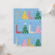 The front of the invitation features large, colourful type that reads "FA LA LA," with the A's cleverly transformed into Christmas trees and party hats. This playful design sets the tone for a lively and spirited event that promises to be nothing short of festive fun.