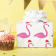 Cute pink flamingos wearing Santa hats look super fun and festive on this tropical holiday wrapping paper.