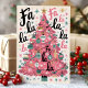 Fa La La La Pink Retro Christmas Tree Holiday Card