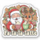 Celebrate the holidays with a cozy caffeine-filled twist in this cheerful Christmas design. A smiling Santa Claus and an adorable reindeer enjoy festive holiday drinks topped with whipped cream and sprinkles—Santa holding a red striped mug and the reindeer sipping from a green coffee cup. Set against a vibrant swirl of red, green, and white, the background is filled with gingerbread men, candy canes, stars, and coffee beans for a sweet seasonal touch. Finished with the playful phrase “Fa-la-la-Latte,” this whimsical design perfectly blends Christmas cheer with coffee-lover charm, making it ideal for anyone who loves festive fun and cozy holiday vibes. ☕🎄