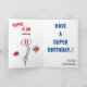 This card is great fun and good quality. I loved the humour inside and on the back. There is the opportunity to change the orientation of this card from landscape to portrait, which I did. It is relatively straightforward to amend the typeface to fit the new orientation. It was well packaged with no plastic. The printing on this card is excellent.