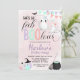 A not so spooky halloween party! Pastel pink, purple, green and peach watercolor FabBOOlous Ghost Halloween Birthday invitation with black and white stripe background.