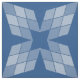 Diamond shapes create a kaleidoscope pattern of four points, such as created in pieced quilting. Diamonds consist of three filtering values, to create pattern in four shades of your chosen background colour (defaults to a medium blue). The four "petals" intersect to create two sizes of four pointed stars in the negative space.