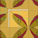 Graphic image of autumn leaf - one side rust colored, the other a greenish color. Leaf veins are drawn in. Pattern is created by having leaf tips/stems of four separate leaves touching in center, creating and "X" pattern. Background may be customized to your taste - defaults to medium yellow.