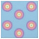 Graphic image of concentric circles in rainbow colours. From centre: green, yellow, orange, red, pink, purple on a blue background. ***Part of coordinated set - BKM1x.