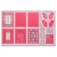 MAKE A WASHABLE, FABRIC, PHOTO FRAME FOR A 4X6" PHOTO & WASHABLE, FABRIC FASHION BROOCH PIN WITH REMOVABLE BOARDS FOR FRAME, AND REMOVABLE PIN BACK FOR BROOCH This fabric fat quarter, has Curvy Plaid, a folk art, feminine, abstract art pattern design by artist Kristie Hubler, copyright 2002. This is a cut and sew, a sewing pattern with the art formatted for each panel part pattern. You will be able to make a frame for a 4x6" photo, and nearly 2" wide by 1 1/2" long brooch. Care instructions: for frame, take out easel back and strut leg boards, photo and acid free sheet protector page cut up protective sleeve, for brooch, remove pin back place frame and/or brooch inside lingerie bag, wash on delicate, cold cycle, air dry on top of towel All of the instructions are ON the fabric fat quarter! I designed this artwork pattern specifically for this size of frame, the 4x6" photo. It's very colourful, bright, whimsical, curly, with pinks, salmon colour, reds, periwinkle, orange, and gold. Just buy 2 1/2 feet (2/3 yard) by 17" wide Thermoweb Ultrahold (acid free) or Lite Heat n Bond - this backs the fabric pattern panels, gives structure and stability to the frame, allowing it to stand sturdy on a table or shelf, gives it form - it also helps keep the frame and brooch from buckling, shrinking. I've used it for 15 years, and am a partner friend of Thermoweb. Heat n Bond is a intergral part of fabricatedframes.com products. Supplies and tools to buy: Thermoweb mentioned above 9" length of 1" wide ribbon, coordinating colour, to join strut leg pocket to easel back panel, tucked inside layers light pink, bright salmon pink orange, or dark reddish brown thread, Toldi Lock, Gutermann's or close matching thread mat board or cardboard 9" wide by 7" high for easel back and strut leg boards that slide out of their pockets - cut easel back board between 4 to 4 1/2" wide by 6" or 6 1/2" high - strut leg board pattern is in white on fabric 1 3/4" length metal bar pin back (sold in packs of 10, 44, 48 at Michaels, AC Moore, JoAnn Fabrics Thank you!