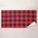 Fabric texture with grid pattern, red squares and bath towel