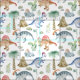 Fabric with watercolor dinosaurs for kids. Adorable pattern on white background.