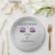 Celebrate the fiftieth birthday milestone with this elegant and glamourous black and pink sparkle birthday paper plates. Adorned with hot pink glittered eyes and diamond sparkles. Personalise it with a name. Created by Simply Farmhouse Press on Zazzle.