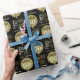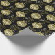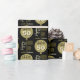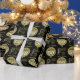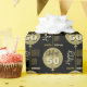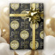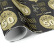 Gold Glitter Balloons with strings make a continuous pattern out of Fabulous 50. Happy Birthday and the birthday person's name hug the balloon string on a black background. The perfect wrapping paper for any glamourous 50 year old.