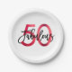 Fabulous 50th | Modern Elegant Chic Red Birthday Paper Plate