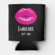 Can cooler with an illustration featuring hot pink lips. Bold and vibrant image. Set on a black background.