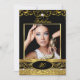 Fabulous Birthday Party Black Gold Floral Photo Invitation