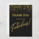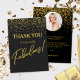 Complete your fabulous birthday celebration with this elegant thank you card from the Fabulous Birthday Photo Collection! Stunning black and gold glitter design with sophisticated printed effect creates a lasting impression. A memorable keepsake your guests will want to save! Personalize with your photo and heartfelt message on the back, using the suggested thank you text or creating your own personal note. Pair with matching invitations, RSVP cards, banners, party supplies, napkins, coasters, plates, cups, and decorations for a cohesive celebration. Available in printed or downloadable formats. For personalized customization assistance, contact remidevandesigns@gmail.com. RemideVan©