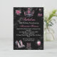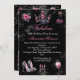 Fabulous birthday Pink Silver Black Tiara High heel Shoes Elegant Candelabra wine glass Black Invitation. Pretty and jewels. Please note: All flat images! They do not have real jewels.