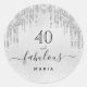A trendy and glamourous 40th (or any age) birthday. A faux silver looking background decorated with faux silver glitter drips, paint dripping look. With the text: 40 and fabulous. Personalise and add a name. Black coloured text. The word Fabulous is written with a modern hand lettered style script with swashes.