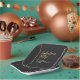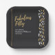 Mark a fabulous 50 with this stylish paper plate designed to impress. The front showcases the phrase “Fabulous Fifty” in graceful gold script against a sleek dark grey background, complemented by a minimal golden line on the left and a festive strip of gold and white confetti fitters on the right. Party details are neatly laid out in a modern sans serif font. The back design bursts with gold and white fitters for a glamorous finish. Perfect for a chic and contemporary birthday soirée.