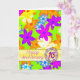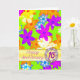 A wedding anniversary card to give to a couple. Fabulous 'op art' flowers in bright colours.A vibrant card that says 'HAPPY!' The multicolored flowers are tumbled across a green background. The card is left blank to use as a note card, or for your own message, See the whole range cards in my store. All artwork copyright by Norma Cornes.