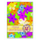 A wedding anniversary card to give to a couple. Fabulous 'op art' flowers in bright colours.A vibrant card that says 'HAPPY!' The multicolored flowers are tumbled across a green background. The card is left blank to use as a note card, or for your own message, See the whole range cards in my store. All artwork copyright by Norma Cornes.