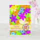 A wedding anniversary card to give to the one you love. Fabulous 'op art' flowers in bright colours.A vibrant card that says 'HAPPY!' The multicolored flowers are tumbled across a green background. The card is left blank to use as a note card, or for your own message, See the whole range cards in my store. All artwork copyright by Norma Cornes.
