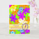 A wedding anniversary card to give to the one you love. Fabulous 'op art' flowers in bright colours.A vibrant card that says 'HAPPY!' The multicolored flowers are tumbled across a green background. The card is left blank to use as a note card, or for your own message, See the whole range cards in my store. All artwork copyright by Norma Cornes.