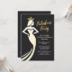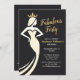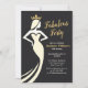 Make a statement with this stylish 40th birthday invitation! The phrase "Fabulous Forty" shines in gold script against a dark grey backdrop, creating a modern yet timeless look. A confident woman in a dress and golden tiara adds glamour on the left, while the right side holds all the party details in a clean sans serif layout. The back is fully adorned with the same woman graphic, enhancing the chic, fashion-forward theme.