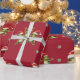 Fabulous Frogs Christmas Holiday on Red Wrapping Paper