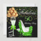 Any Age. Fabulous 40, 50, 60, 70, 80, Birthday Party. Elegant Lime Green Glitter High Heel shoes, Gold Sparkle and Black Champagne. Women's ladies or mens. Elegant Classy Celebrations All Occasion Invitations. Party birthday invites Template for 21st, 30th, 40th, 50th, 60th, 70th, 80th, 90, 100th,
