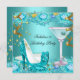 Fabulous Teal Blue Glitter High Heels Martini Invitation