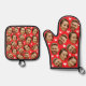 Face Custom Photo With Heart Couple Red Oven Mitt & Pot Holder Set