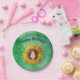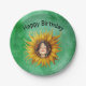 This paper plate is green with the face of smiling cute girl in the middle of a fancy big yellow sunflower. Customise the Happy Birthday text with the templates.