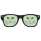 Face of Cat in black Green eyes Whiskers on Green Retro Sunglasses