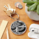 This keychain features a black and white pattern that can resemble many shapes and forms but the whole image looks like an evil face with dark staring eyes and a wide grin.