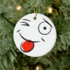 face sticking tongue out. Raspberry face Ceramic Tree Decoration