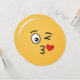 A kissing emoji. One eye is open, the other is winking. A heart is shown leaving the kissing mouth.