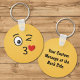 A kissing emoticon. One eye is open, the other is winking. A heart is shown leaving the kissing mouth.