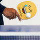 A laughing emoticon that is laughing so much that it is crying tears of joy. Custom text.