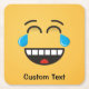 A laughing emoticon that is laughing so much that it is crying tears of joy. Custom text.