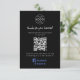 A simple custom black scan to leave a facebook review QR code business thank you enclosure cards in a modern minimalist style. The versatile template can easily be updated with your company logo, graphic or photo, QR code and custom text. The review site logo can easily be replaced with another (eg. Yelp, TripAdvisor, Google) to make a truly bespoke professional design to help you grow your business! Need help? Feel free to contact me using the message button on the product page. I am happy to help with your personalization such as adding different icons.