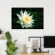 A tender white water lily eagerly seeks the rays of the sun in this delicate photograph.