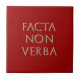 Tile with Latin motto Facta Non Verba in golden 3d letters